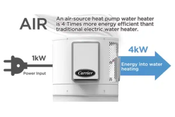 Harvest the free energy from our plentiful air to heat your water with the advanced Carrier heat pump from Carrier. This renewable energy water heating technology uses up to 77% less energy than a conventional water heater, whilst providing reliable hot water all day and night.